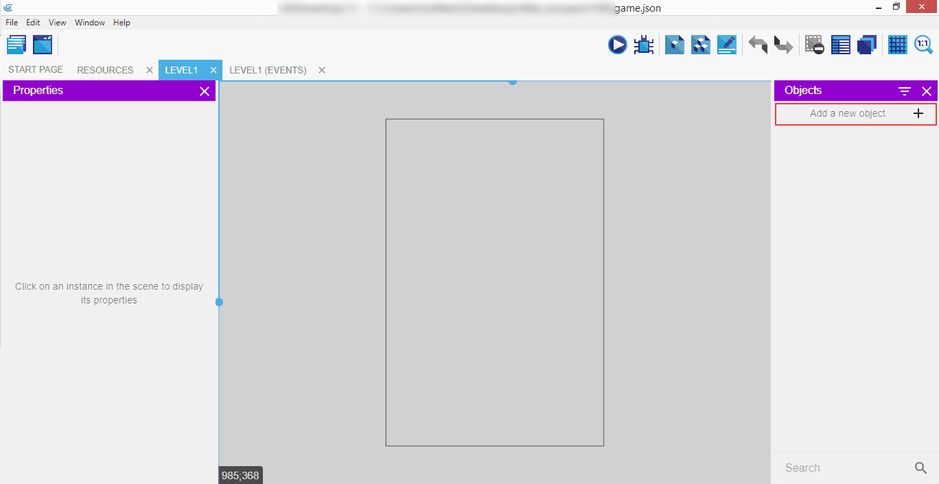 We will be able to do that by clicking on the "Add a new object" button in the "Objects" panel on the right.